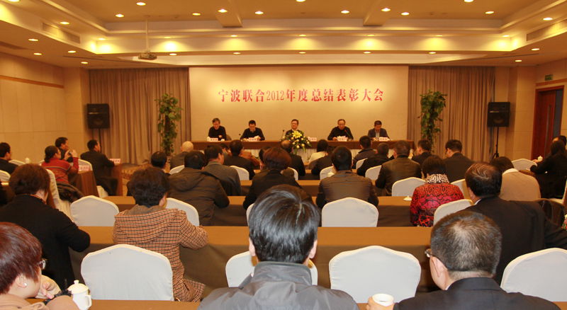 2013年2月6日上午,寧波聯(lián)合集團(tuán)股份有限公司在戚家山賓館舉行2012年度總結(jié)表彰大會。公司總部全體員工、直屬企業(yè)和B類企業(yè)領(lǐng)導(dǎo)班子成員以及公司2012年度先進(jìn)單位代表和先進(jìn)個(gè)人代表近百人與會。公司領(lǐng)導(dǎo)王維和、陳建華、戴曉峻、周兆惠、董慶慈在主席臺就座,監(jiān)事會主席陳建華主持了本次會議。